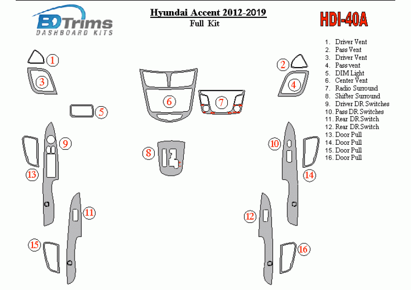 Hyundai Accent 2012 - 2019 Dash Trim Kit