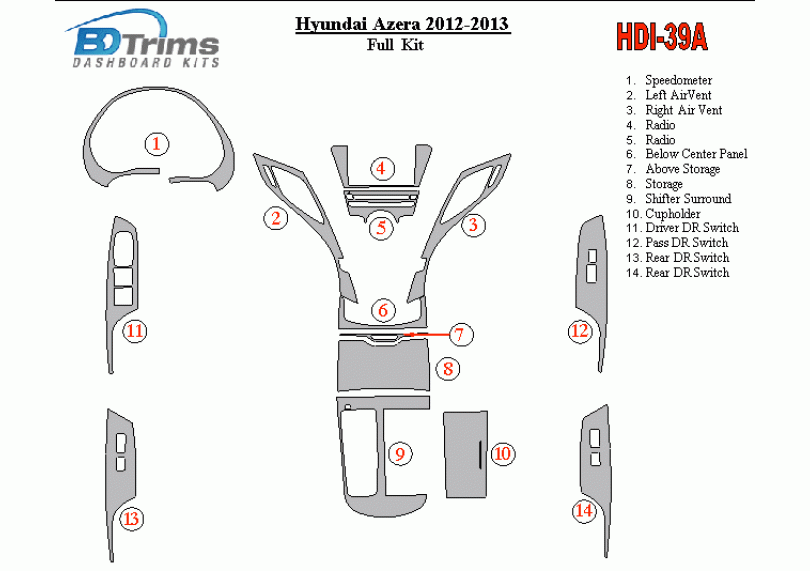 Hyundai Azera 2012 - 2013 Dash Trim Kit