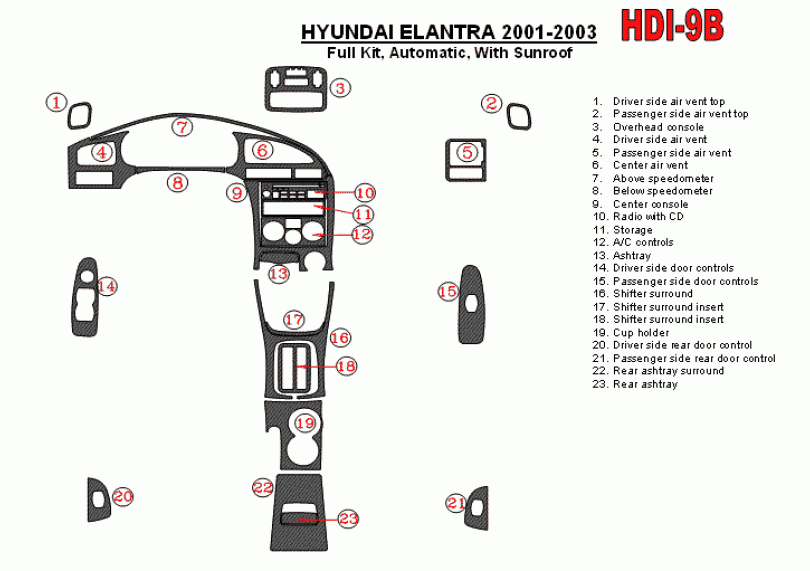 Hyundai Elantra 2001 - 2003 Dash Trim Kit