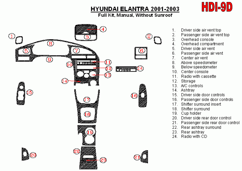 Hyundai Elantra 2001 - 2003 Dash Trim Kit