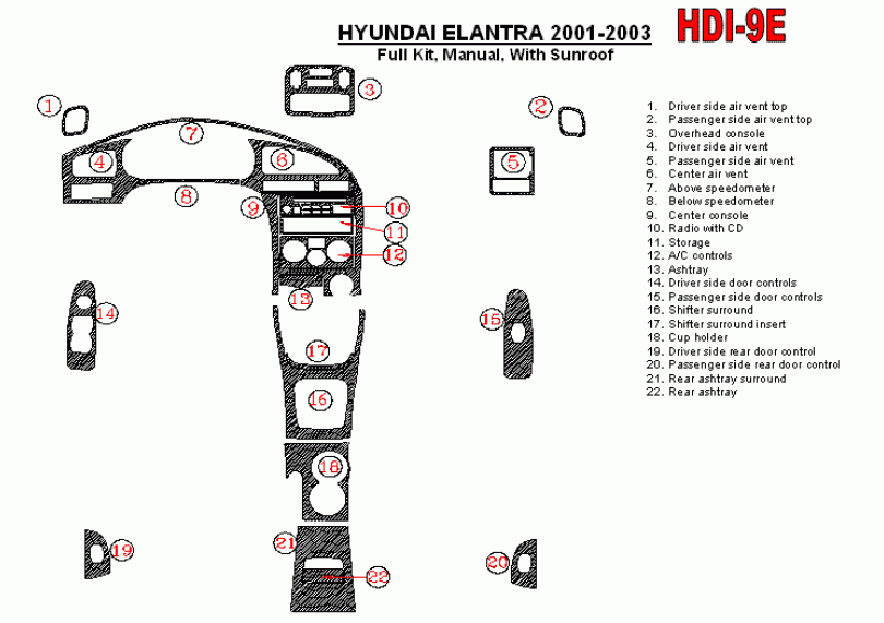Hyundai Elantra 2001 - 2003 Dash Trim Kit