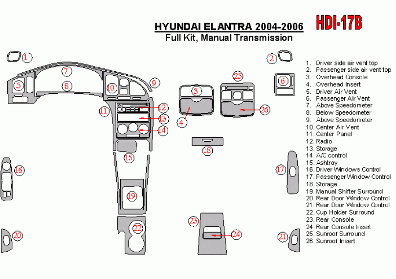 Hyundai Elantra 2004 - 2006 Dash Trim Kit