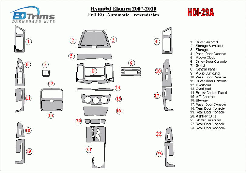 Hyundai Elantra 2007 - 2010 Dash Trim Kit