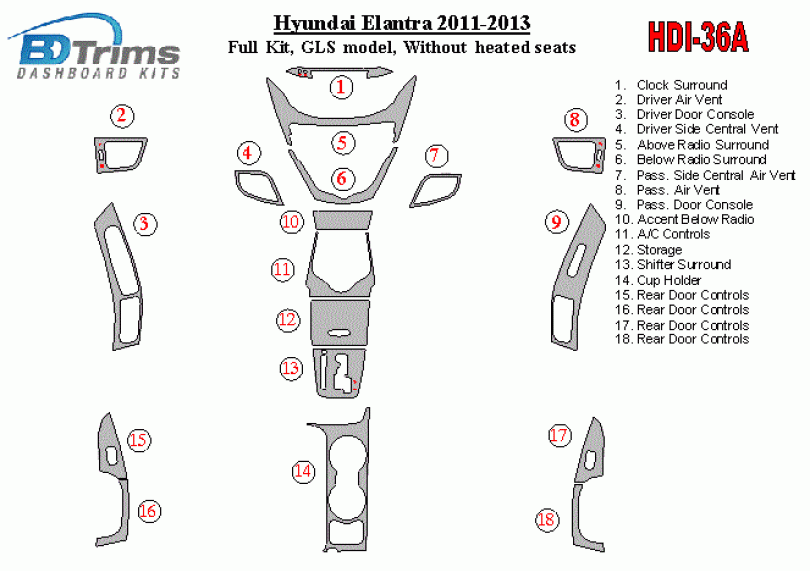 Hyundai Elantra 2011 - 2013 Dash Trim Kit