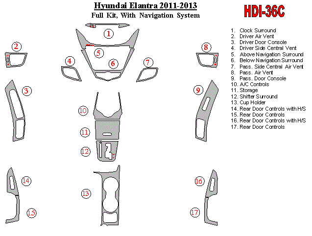 Hyundai Elantra 2011 - 2013 Dash Trim Kit