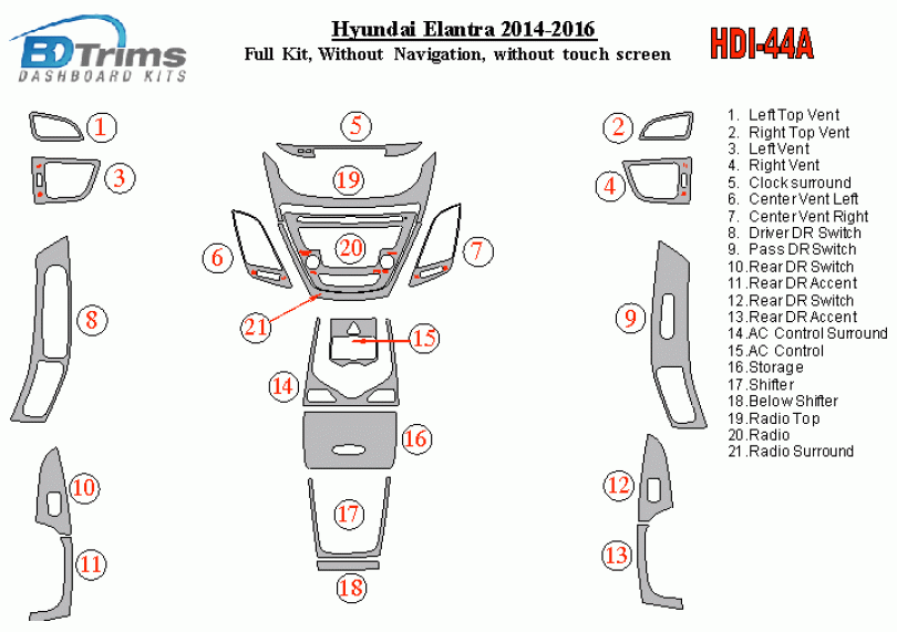 Hyundai Elantra 2014 - 2016 Dash Trim Kit