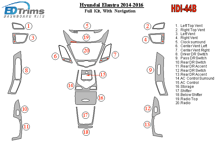 Hyundai Elantra 2014 - 2016 Dash Trim Kit
