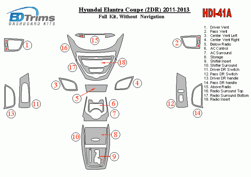 Hyundai Elantra Coupe 2011 - 2013 Dash Trim Kit