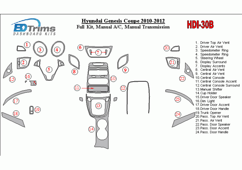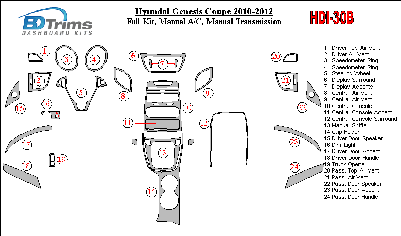 Hyundai Genesis Coupe 2010 - 2012 Dash Trim Kit