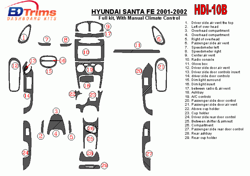 Hyundai Santa Fe 2001 - 2002 Dash Trim Kit