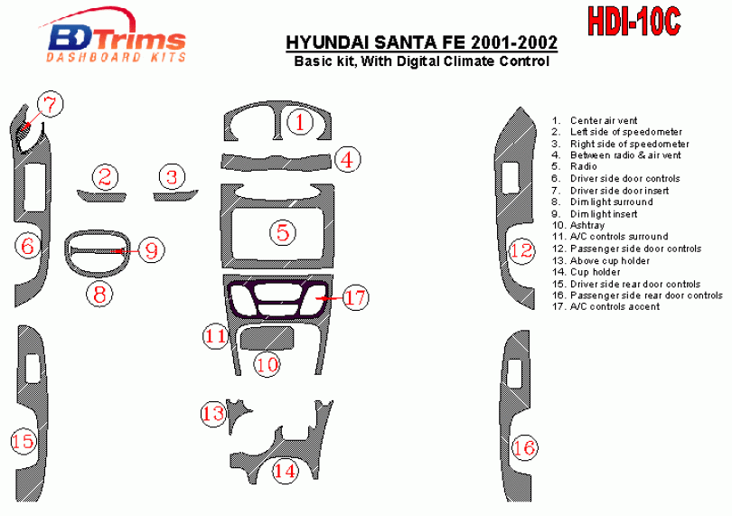 Hyundai Santa Fe 2001 - 2002 Dash Trim Kit