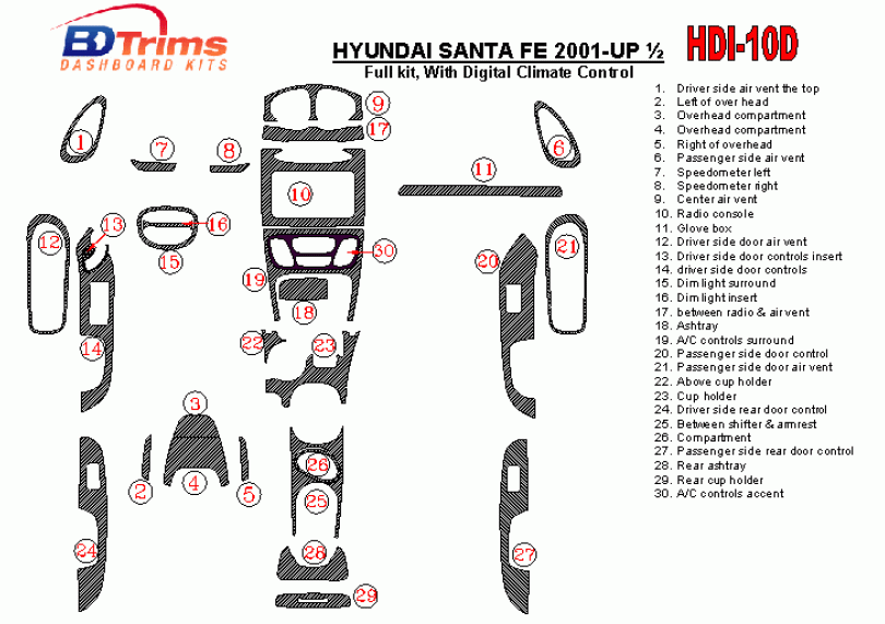 Hyundai Santa Fe 2001 - 2002 Dash Trim Kit