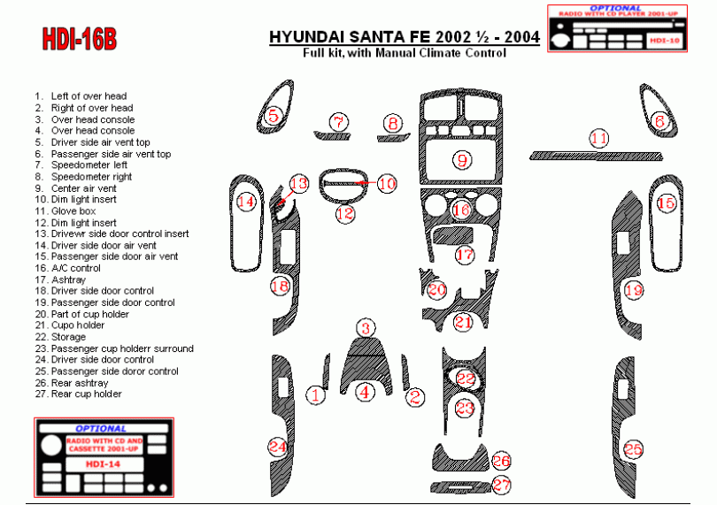 Hyundai Santa Fe 2002 - 2004 Dash Trim Kit