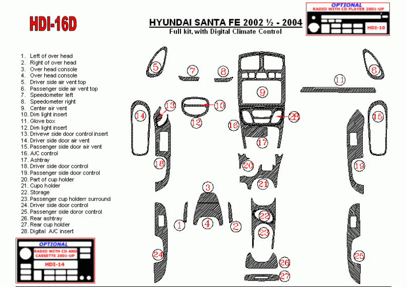Hyundai Santa Fe 2002 - 2004 Dash Trim Kit
