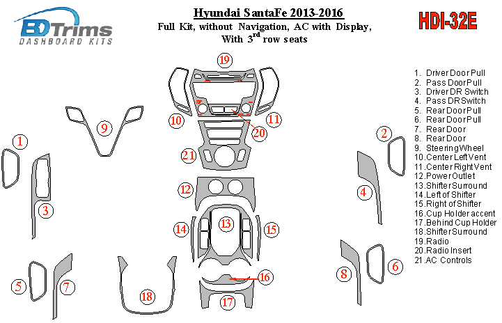 Hyundai Santa Fe 2013 - 2016 Dash Trim Kit