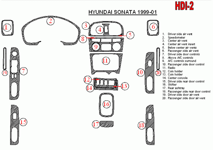 Hyundai Sonata 1999 - 2001 Dash Trim Kit