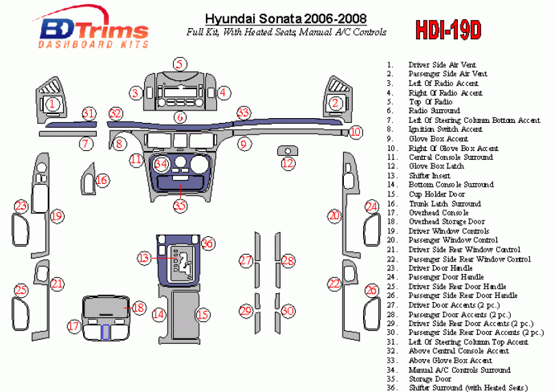 Hyundai Sonata 2006 - 2008 Dash Trim Kit