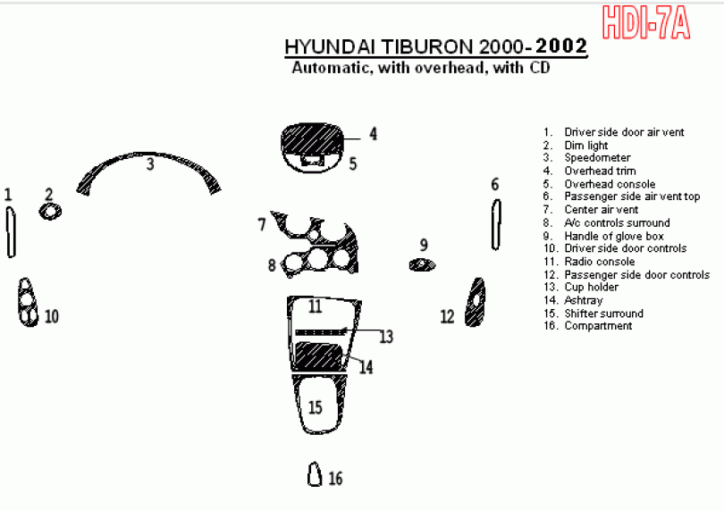 Hyundai Tiburon 2000 - 2002 Dash Trim Kit