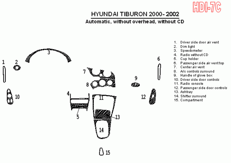 Hyundai Tiburon 2000 - 2002 Dash Trim Kit