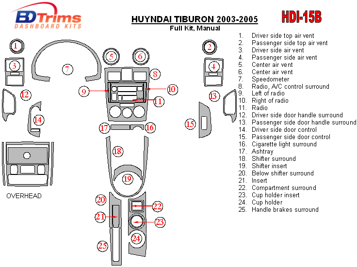 Hyundai Tiburon 2003 - 2005 Dash Trim Kit