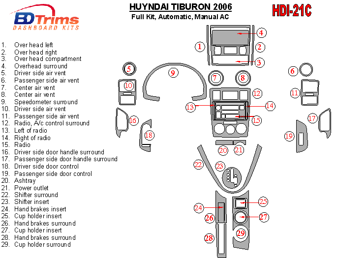 Hyundai Tiburon 2006 - 2006 Dash Trim Kit