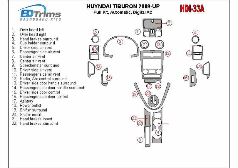 Hyundai Tiburon 2009 - 9999 Dash Trim Kit