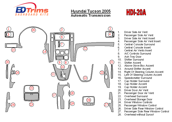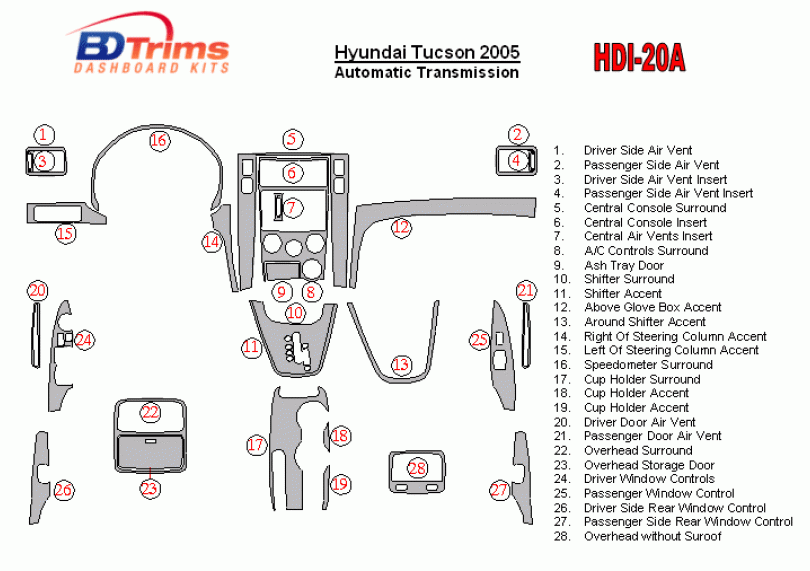 Hyundai Tucson 2005 - 2005 Dash Trim Kit