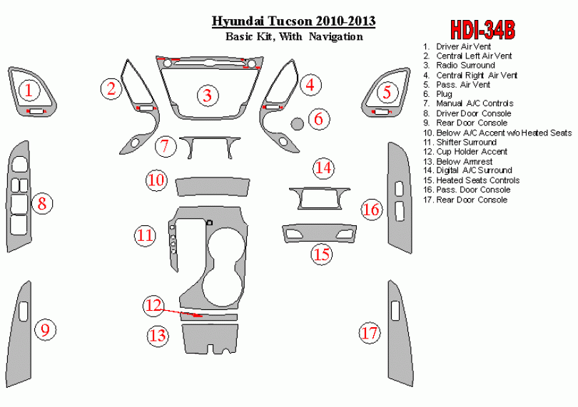 Hyundai Tucson 2010 - 2013 Dash Trim Kit