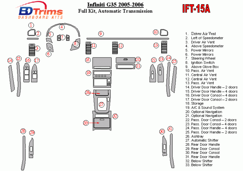 Infiniti G35 2005 - 2006 Dash Trim Kit
