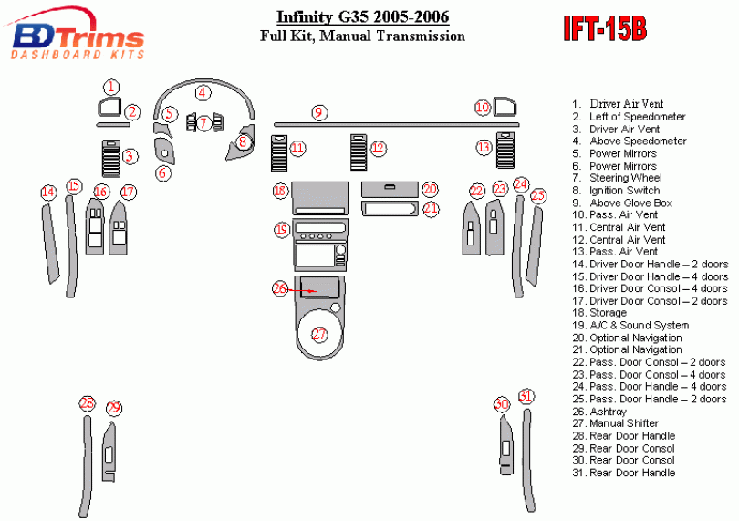 Infiniti G35 2005 - 2006 Dash Trim Kit