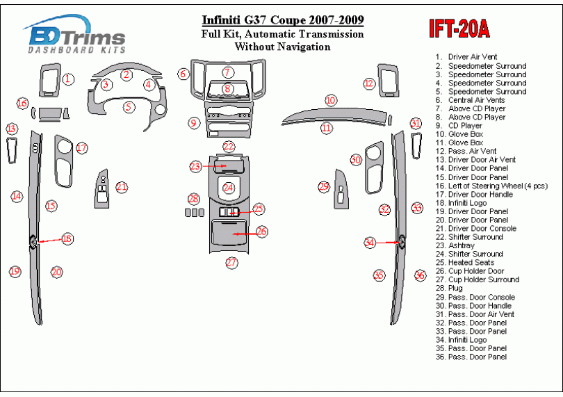 Infiniti G37 2007 - 2009 Dash Trim Kit