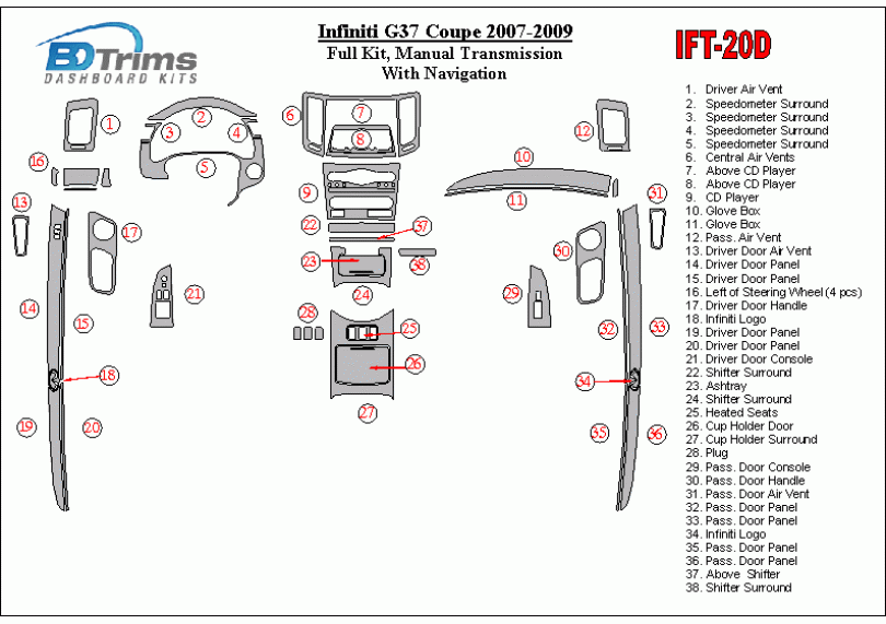 Infiniti G37 2007 - 2009 Dash Trim Kit