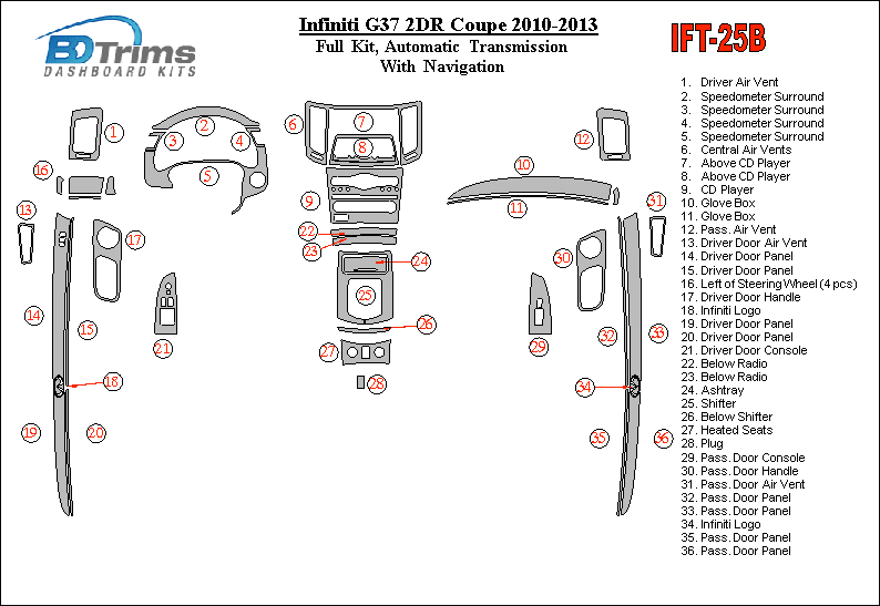Infiniti G37 Coupe 2010 - 2013 Dash Trim Kit