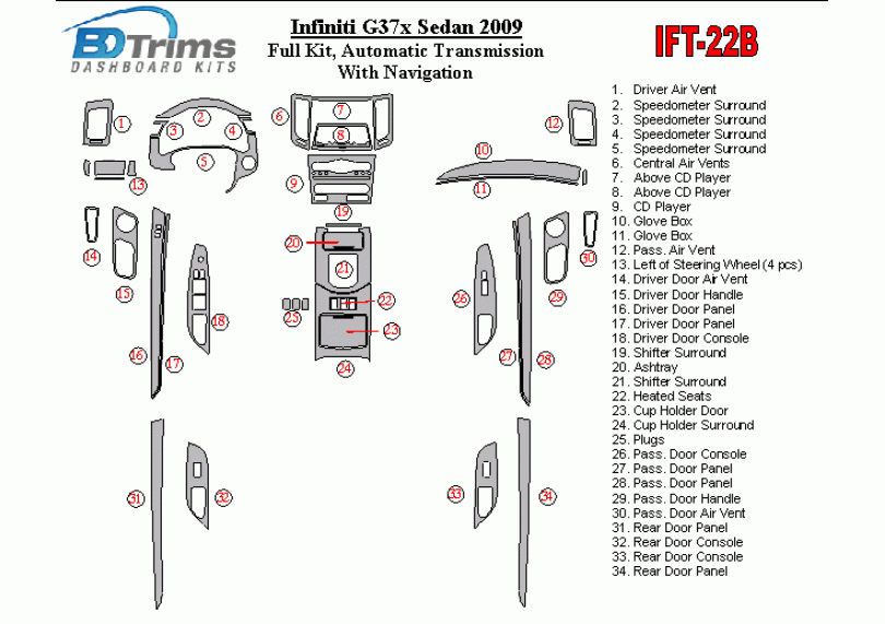 Infiniti G37x Sedan 2009 - 2009 Dash Trim Kit