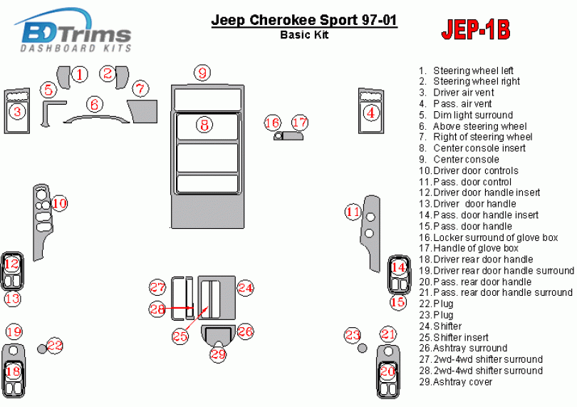 Jeep Cherokee Sport 1997 - 2001 Dash Trim Kit