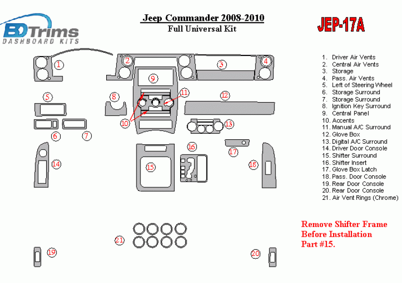 Jeep Commander 2008 - 2010 Dash Trim Kit