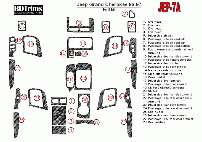 Jeep Grand Cherokee 1996 - 1997 Dash Trim Kit
