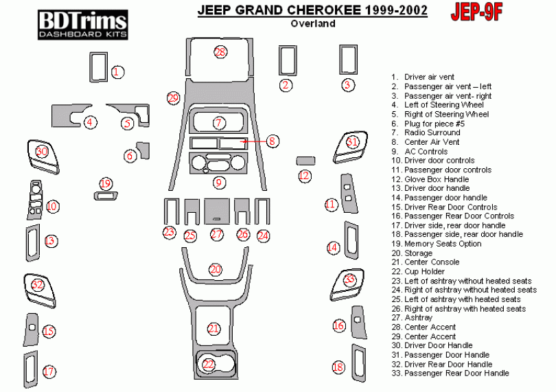 Jeep Grand Cherokee 1999 - 2002 Dash Trim Kit