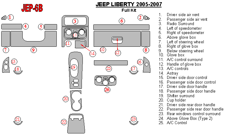 Jeep Liberty 2005 - 2007 Dash Trim Kit