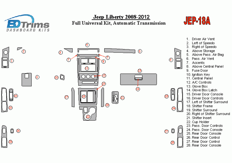 Jeep Liberty 2008 - 2012 Dash Trim Kit