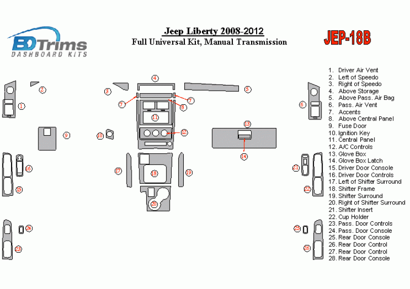 Jeep Liberty 2008 - 2012 Dash Trim Kit