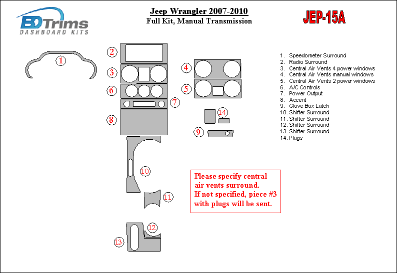 Jeep Wrangler 2007 - 2010 Dash Trim Kit