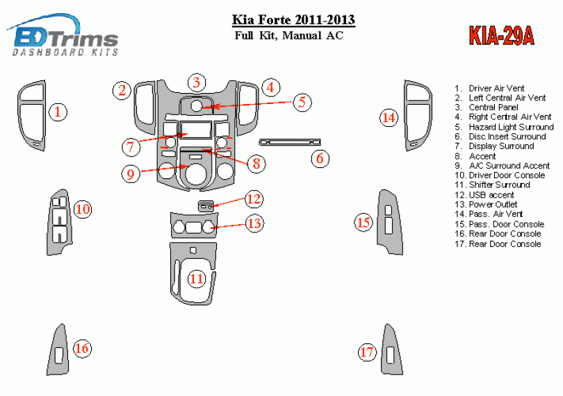 KIA Forte 2011 - 2013 Dash Trim Kit