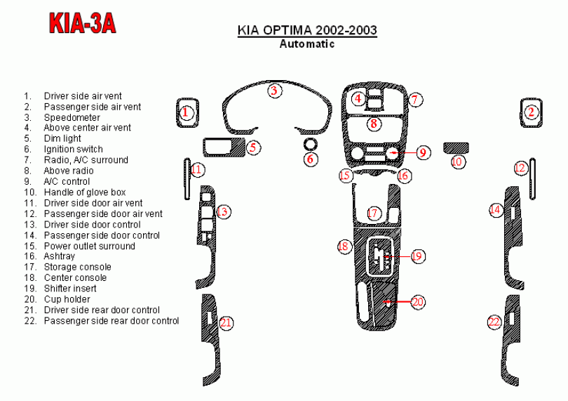 Kia Optima 2002 - 2003 Dash Trim Kit