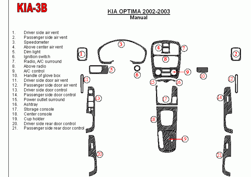 Kia Optima 2002 - 2003 Dash Trim Kit