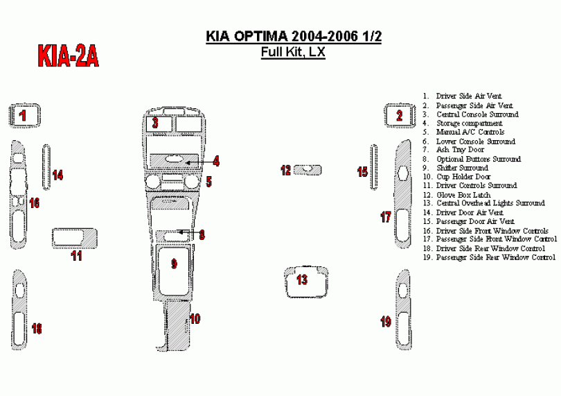 KIA OPTIMA 2004 - 2006 Dash Trim Kit