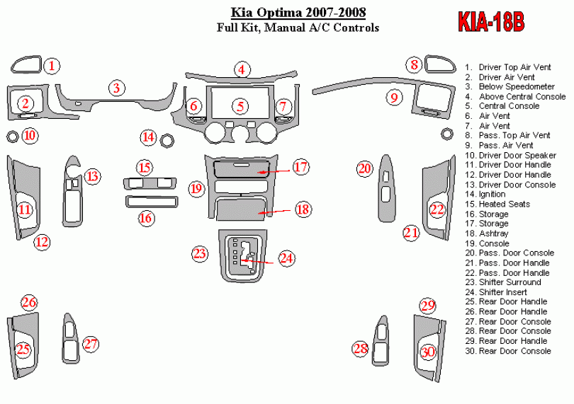 KIA OPTIMA 2007 - 2008 Dash Trim Kit