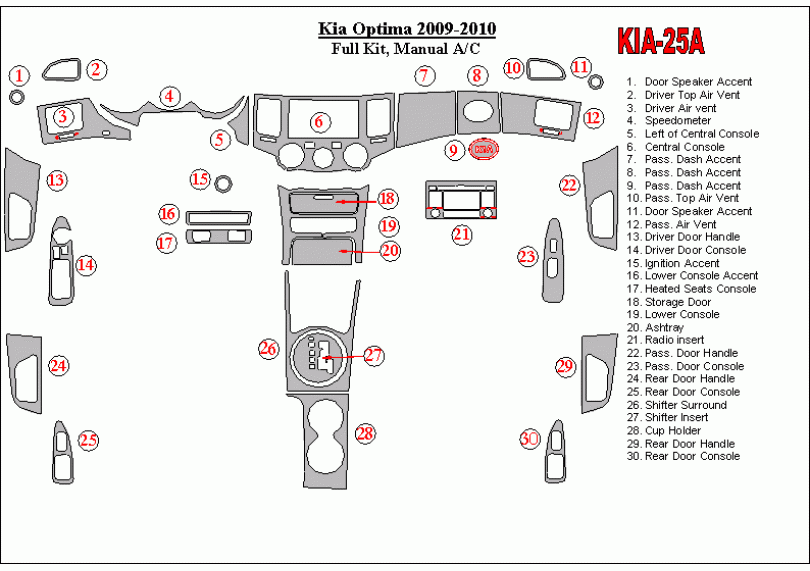 KIA OPTIMA 2009 - 2010 Dash Trim Kit