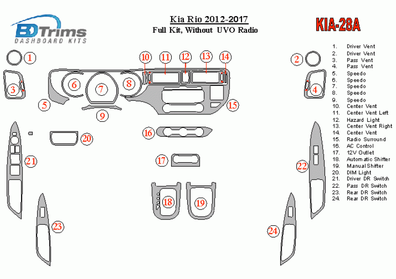 KIA Rio 2012 - 2017 Dash Trim Kit
