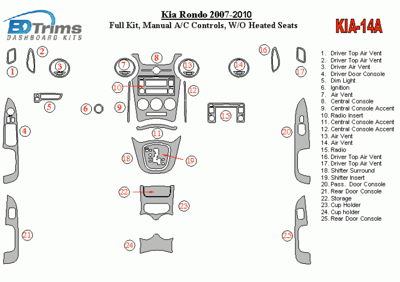 KIA Rondo 2007 - 2010 Dash Trim Kit